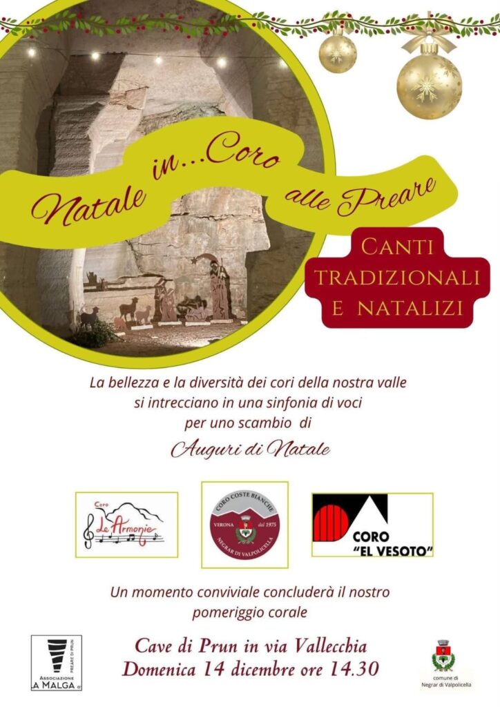 Domenica 14 Dicembre ore 14.30 Cave di Prun Rassegna corale “Natale in …..Coro alle Preare”, canti tradizionali e natalizi con i cori “Coste Bianche” di Negrar e “Le Armonie” di Cavalo